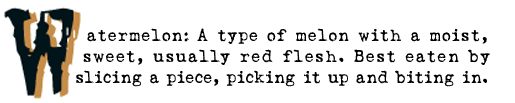 | Watermelon has a very high water content and can be used to quench thirst. A cold, refreshing watermelon is also a great summertime treat. Hot summer nights and watermelons just seem to go together. Short of a skinny dip in the pond, there's nothing that'll cool you off any better than a slice of icy-cold watermelon.
